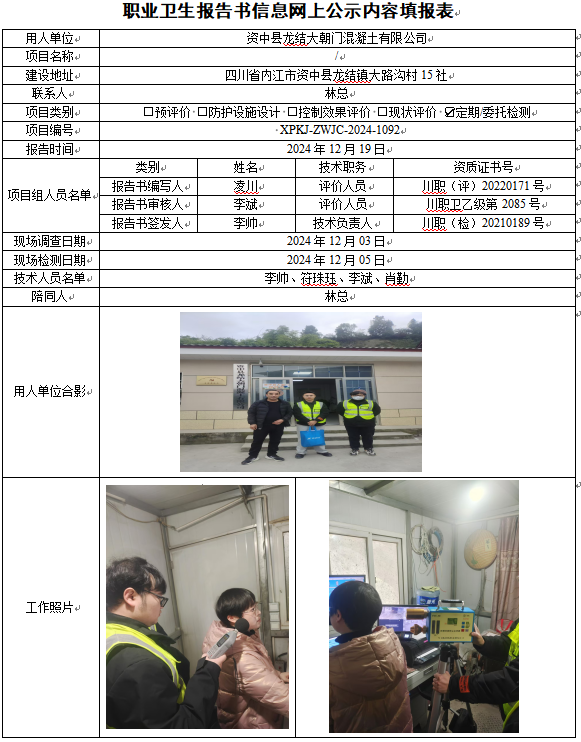 资中县龙结大朝门混凝土有限公司职业病危害因素定期检测