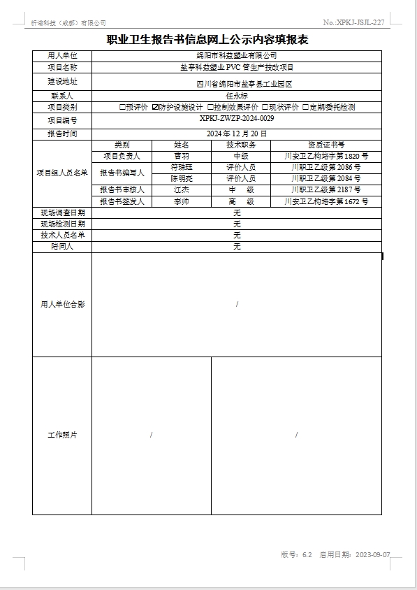 罗江区恒利玻纤厂职业病危害因素定期检测