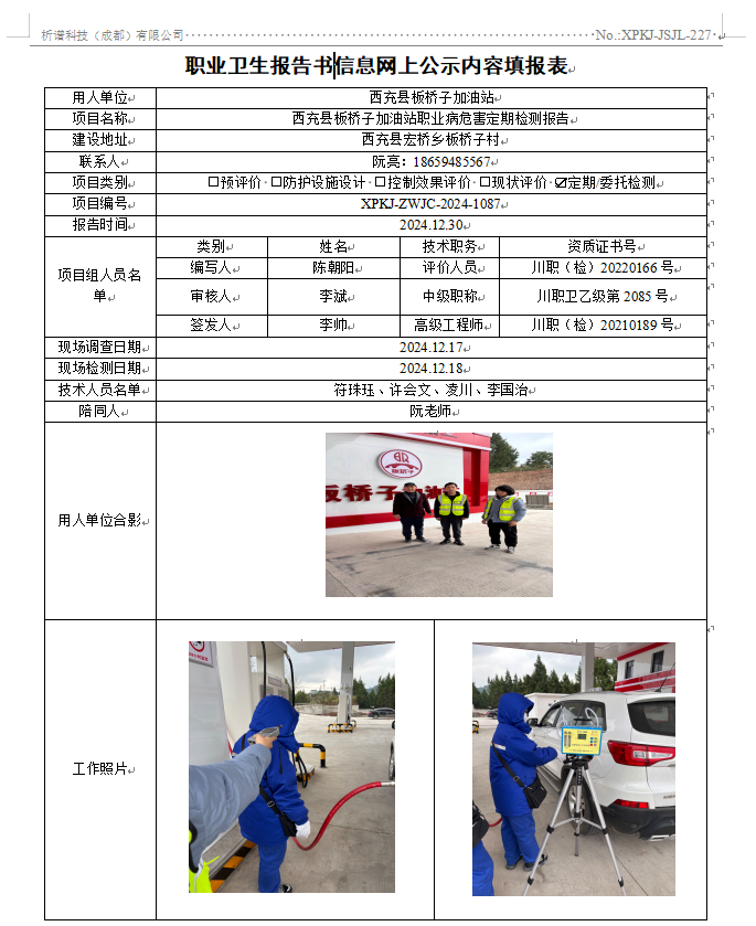 西充双凤凤仪垭加油站职业病危害因素定期检测