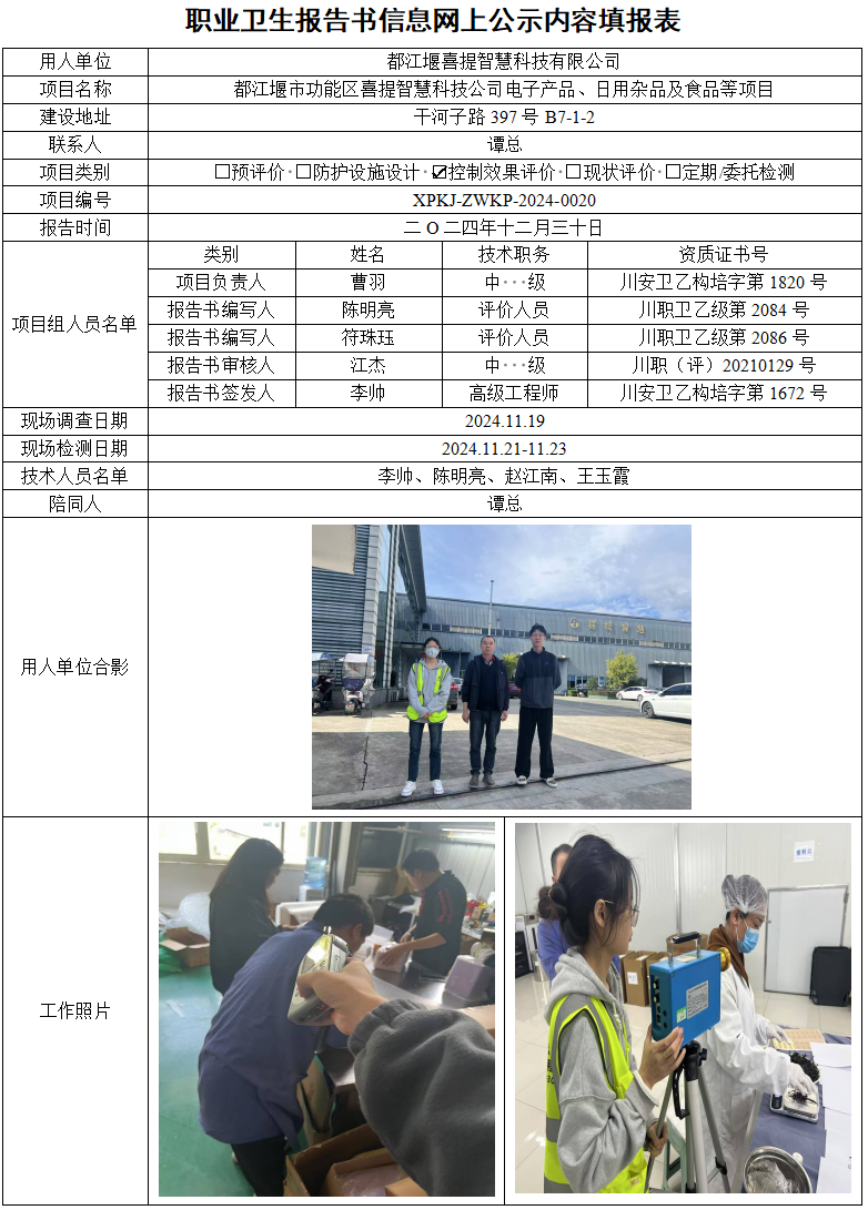 都江堰喜提智慧科技有限公司职业病危害因素控制效果评价