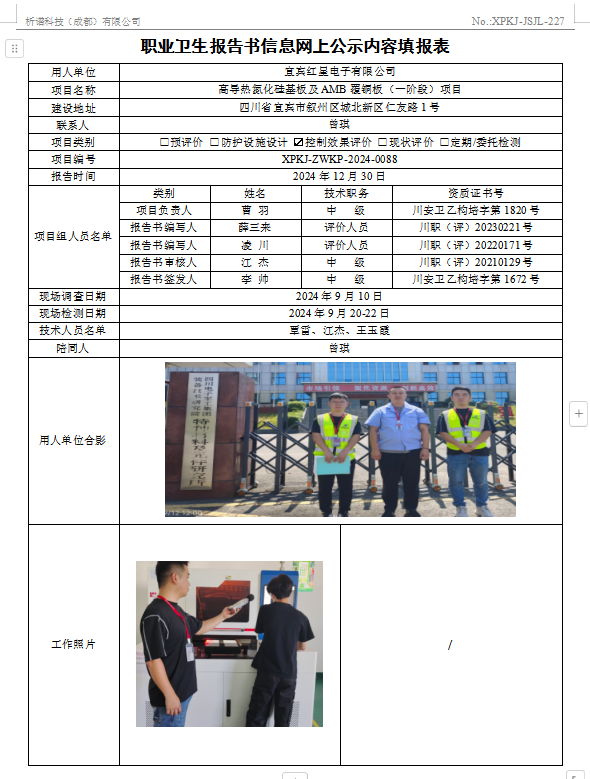宜宾红星电子有限公司职业病危害因素控制效果评价