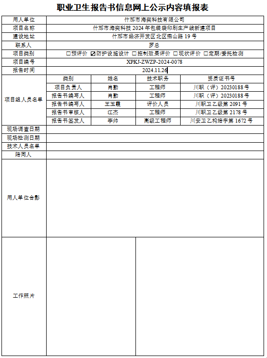 什邡市海奕科技有限公司职业病危害因素防护设施设计专篇