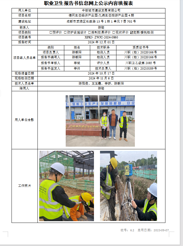 成都艾米丽木业有限公司职业病危害因素现状评价