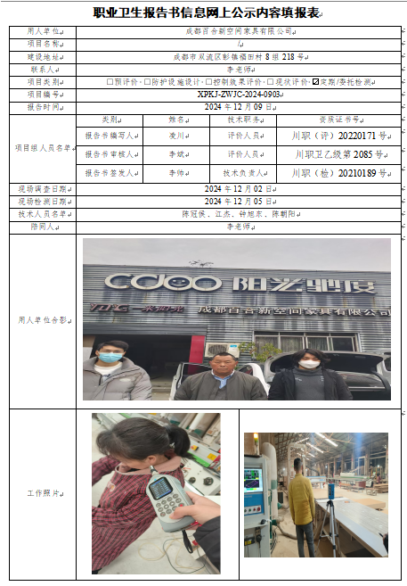 成都百合新空间家具有限公司职业病危害因素定期检测