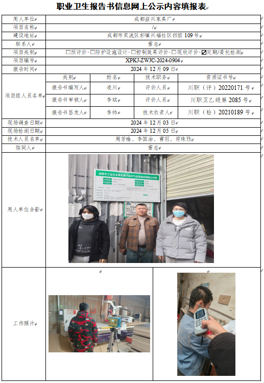 成都百合新空间家具有限公司职业病危害因素定期检测