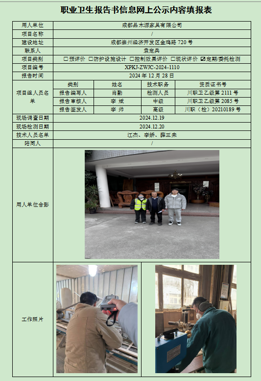 德阳乐川井盖制造有限公司职业病危害因素现状评价
