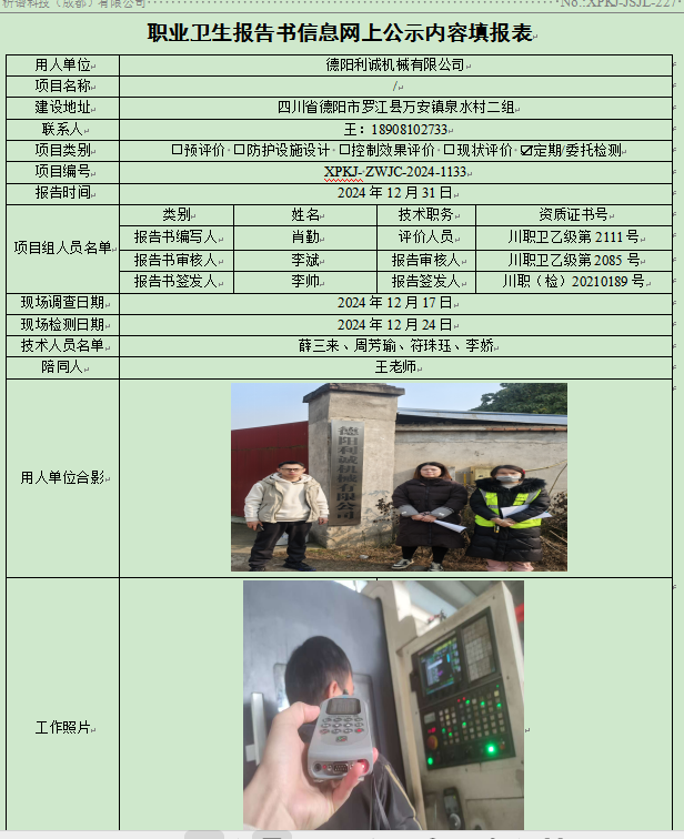 都江堰市润利机械粗制厂职业病危害因素定期检测