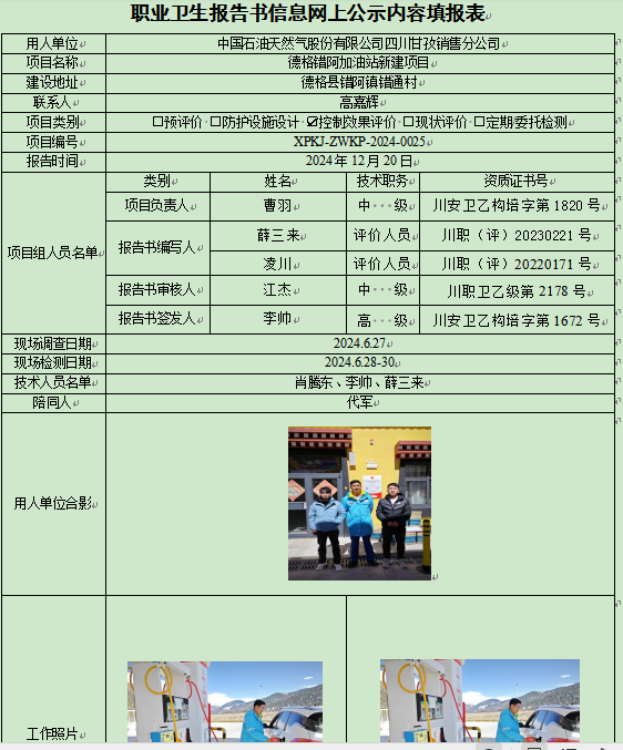 中国石油天然气股份有限公司四川甘孜销售分公司德格错阿加油站职业病危害因素控制效果评价