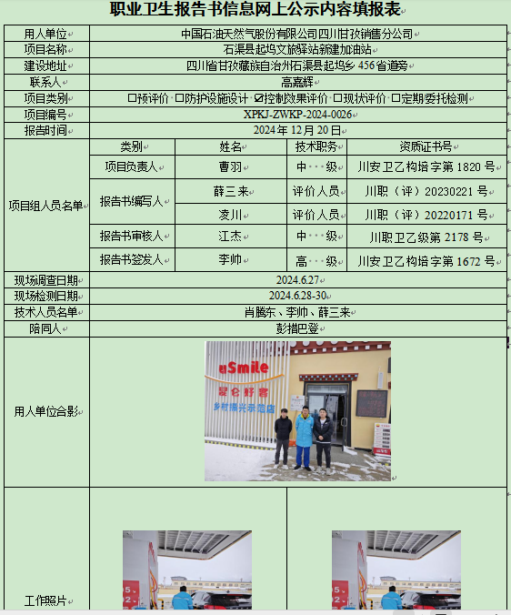 中国石油天然气股份有限公司四川甘孜销售分公司石渠起坞文旅驿站加油站职业病危害因素控制效果评价