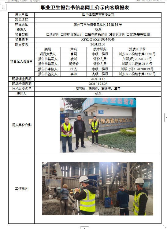 成都市佳恒塑胶有限公司职业病危害因素现状评价