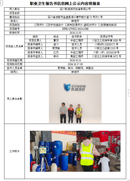 四川凯威消防设备有限公司职业病危害因素现状评价
