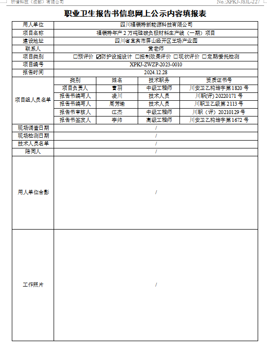 四川福镁特新能源科技有限公司职业病危害因素防护设施设计专篇