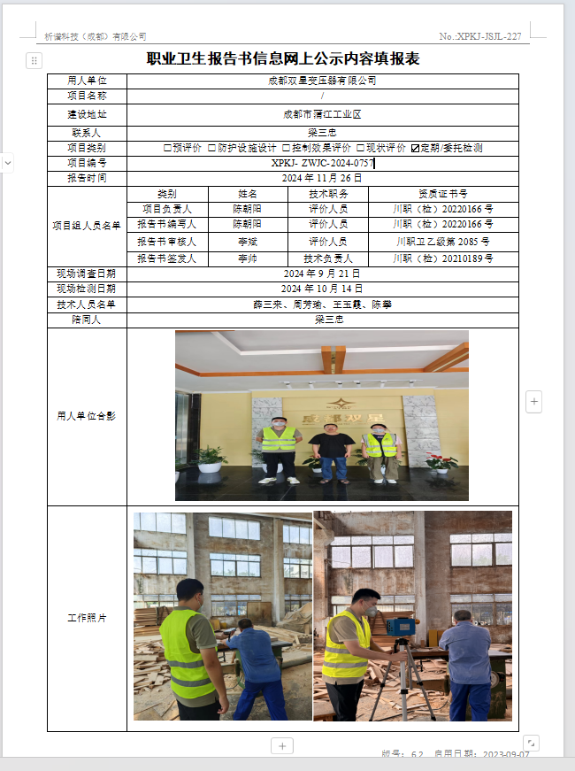 自贡信开水环境治理有限公司富顺代寺镇污水处理厂职业病危害因素定期检测