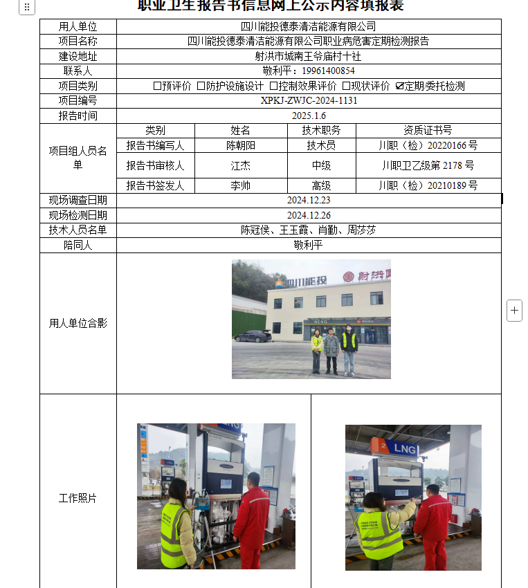 四川能投德泰清洁能源有限公司职业病危害因素定期检测