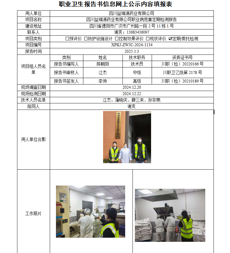 成都阿斯贝瑞科技有限公司职业病危害因素定期检测