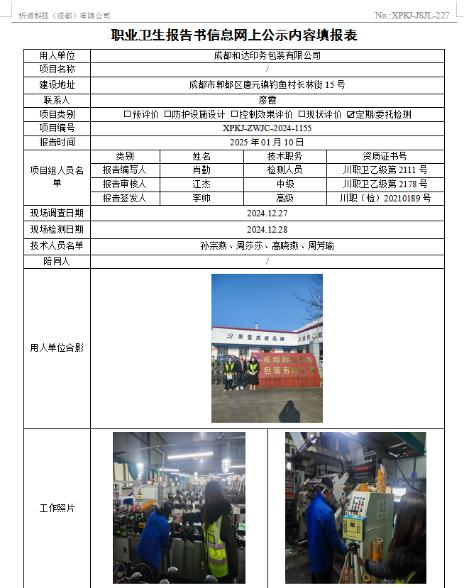 德阳柏森食品包装有限公司职业病危害因素控制效果评价