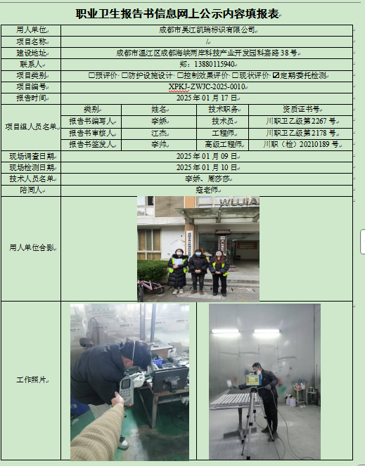 成都市吴江凯瑞标识有限公司职业病危害因素定期检测