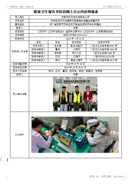 成都华芯天微科技有限公司职业病危害因素控制效果评价