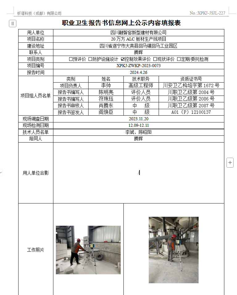 四川铭丰电子材料科技有限公司职业病危害因素控制效果评价