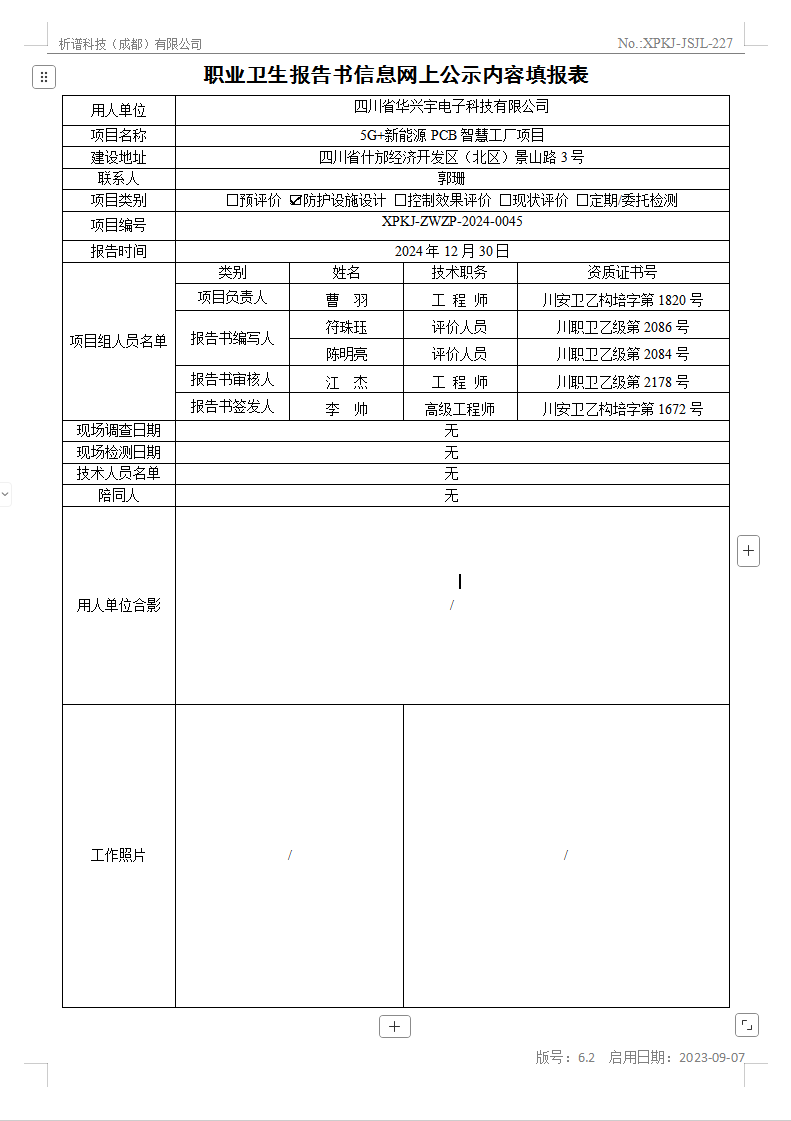 四川省华兴宇电子科技有限公司防护设施设计专篇