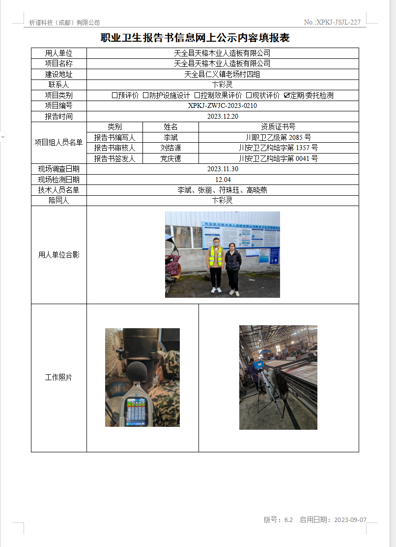 德阳鑫震洲家具有限公司职业病危害控制效果评价
