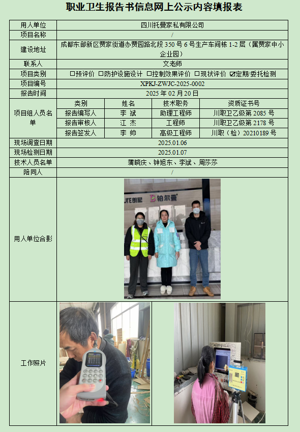 日东材料科技(成都)有限公司崇州市日东(OLED工程用)大尺寸光学保护膜技改项目职业病危害因素预评价