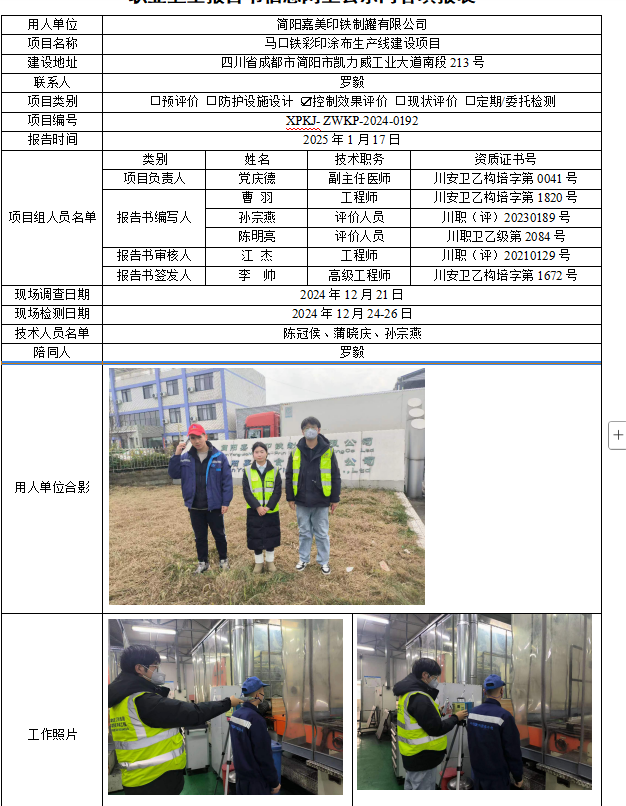 简阳嘉美印铁制罐有限公司职业病危害因素控制效果评价