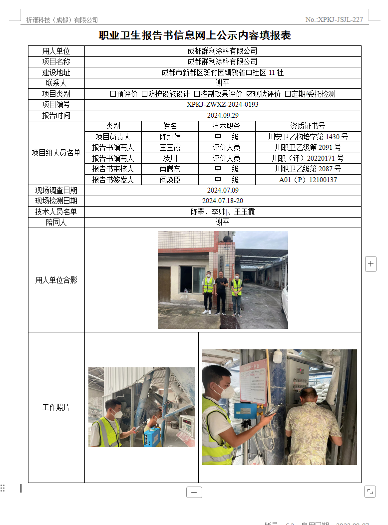 成都鑫鹏涂料有限公司职业病危害因素现状评价