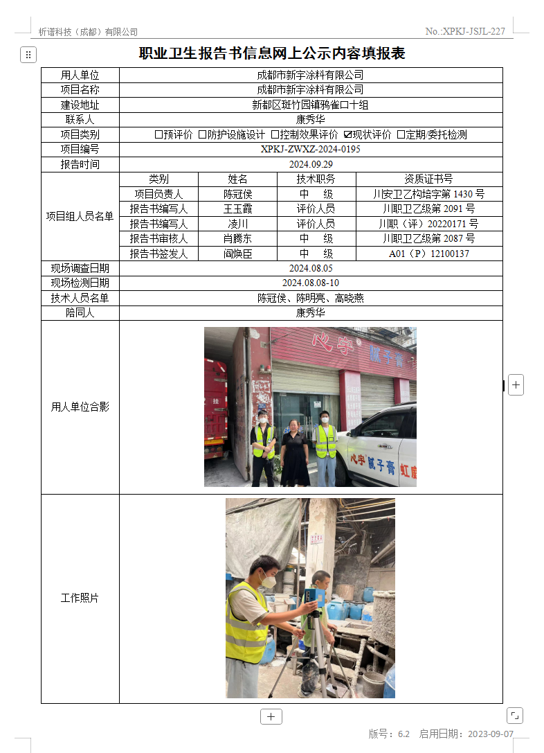 成都鑫鹏涂料有限公司职业病危害因素现状评价