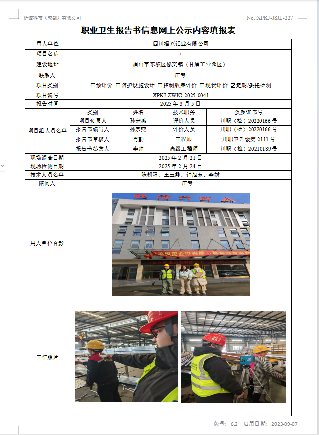 四川鸿泽电子科技有限公司职业病危害因素定期检测