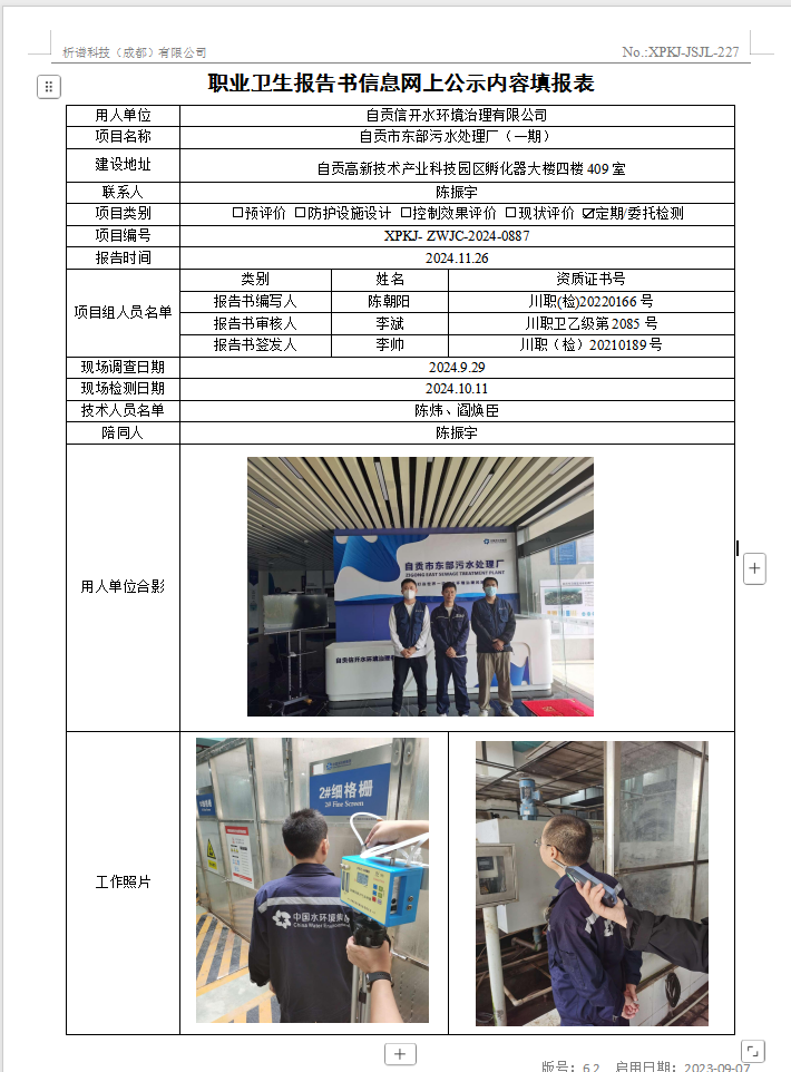 绵竹龙安玻陶有限公司职业病危害因素定期检测