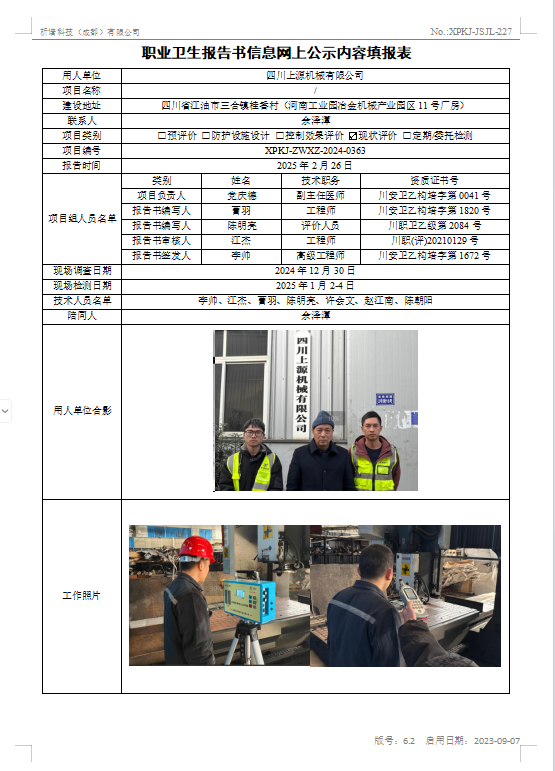 中国石油天然气股份有限公司吉林油田川南天然气勘探开发分公司职业病危害因素定期检测