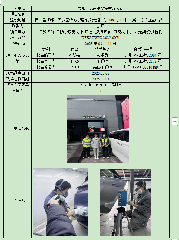 成都世纪远景商贸有限公司职业病危害因素定期检测