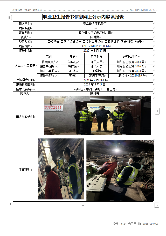 内江市合力路通建材有限公司职业病危害因素定期检测