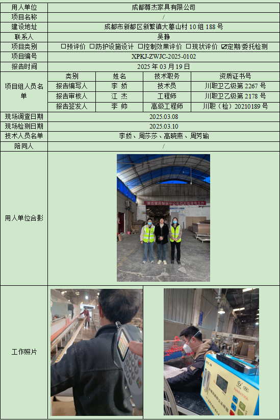 成都文龙酒店设备有限公司职业病危害因素定期检测