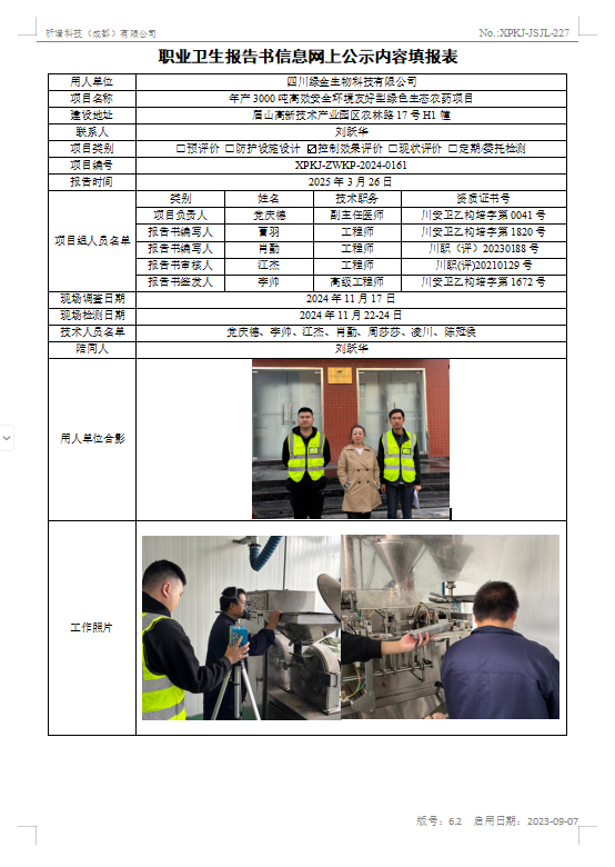成都绿金生物科技有限责任公司职业病危害因素控制效果评价