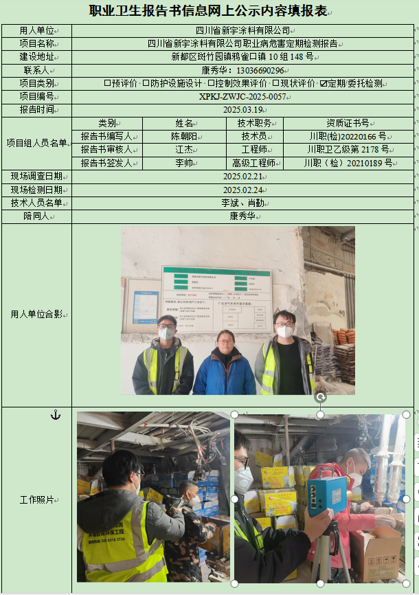 成都文龙酒店设备有限公司职业病危害因素定期检测
