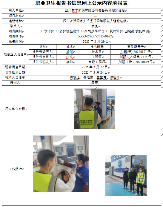 四川家宁能源有限公司安岳县顺城加油站职业病危害因素定期检测