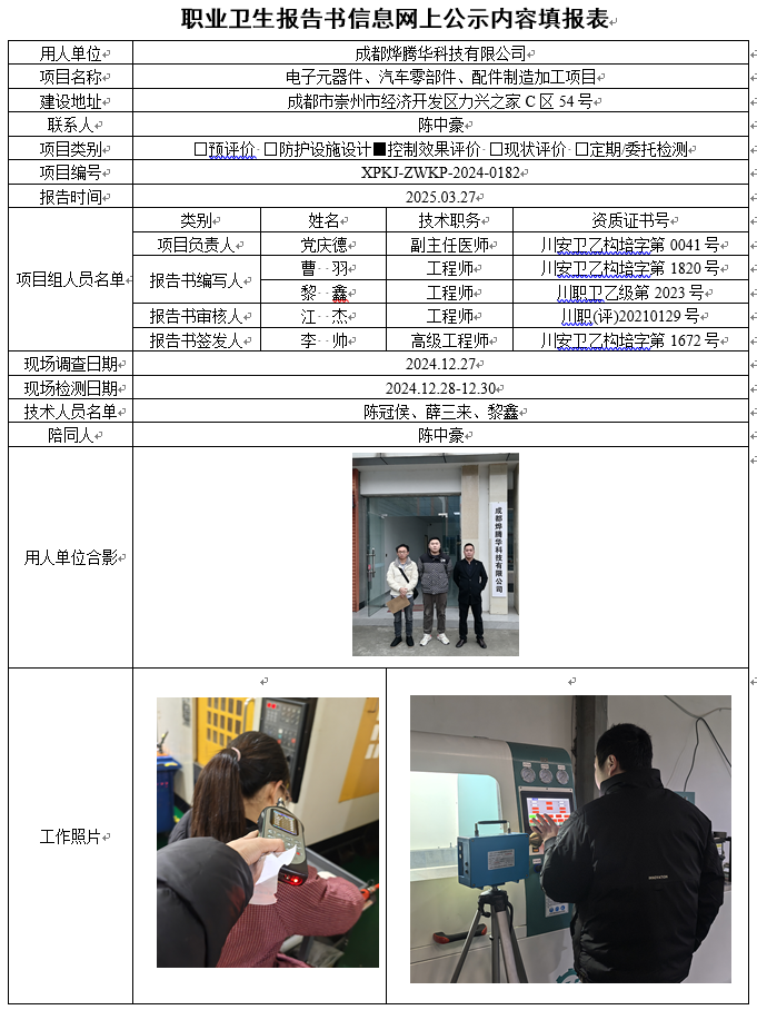 成都烨腾华科技有限公司职业病危害因素控制效果评价