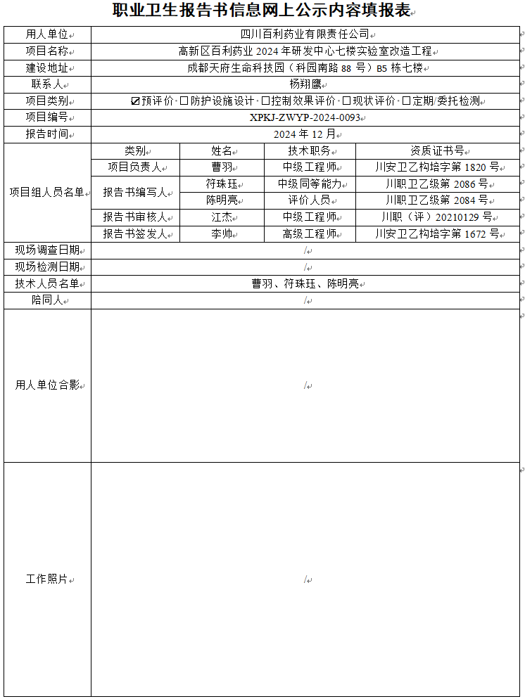 成都开来建辅材料有限公司职业病危害因素现状评价