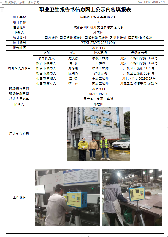 成都华龙兴川科技有限公司职业病危害因素定期检测