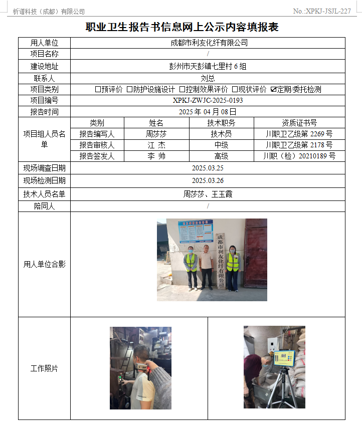 成都市聚发水电投资有限公司职业病危害因素现状评价