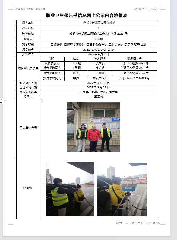 广汉鑫雅憩装饰材料有限公司职业病危害因素定期检测