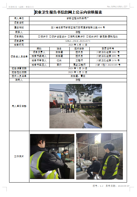四川蜀旺新能源股份有限公司职业病危害因素控制效果评价