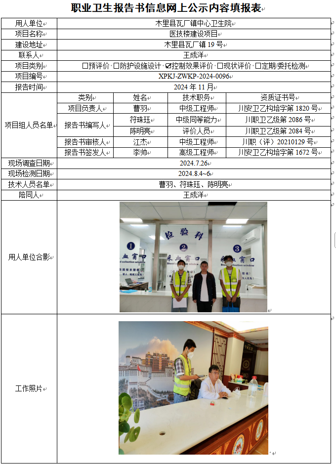 木里县瓦厂镇中心卫生院职业病危害因素控制效果评价