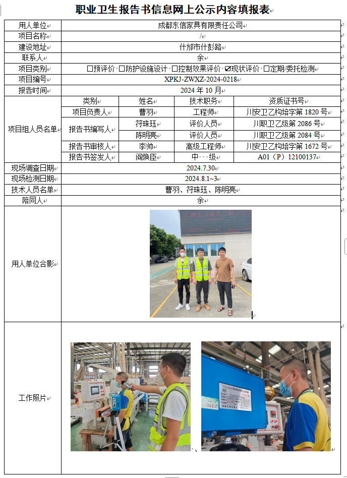 自流井区鹏一程建材经营部职业病危害因素定期检测