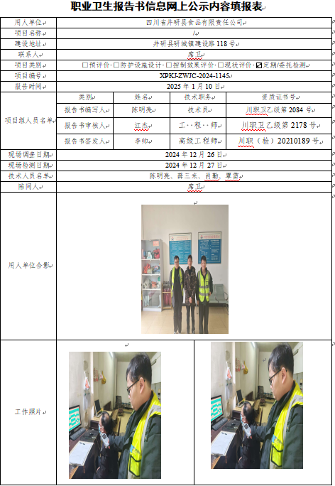 四川省井研县食品有限责任公司职业病危害因素定期检测