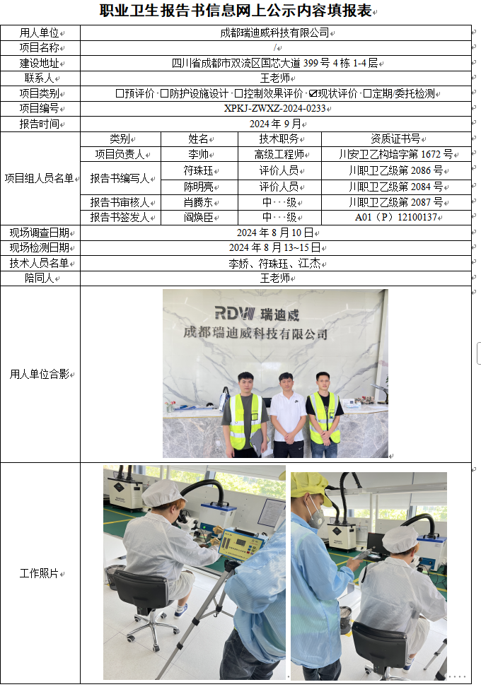 成都瑞迪威科技有限公司职业病危害因素现状评价