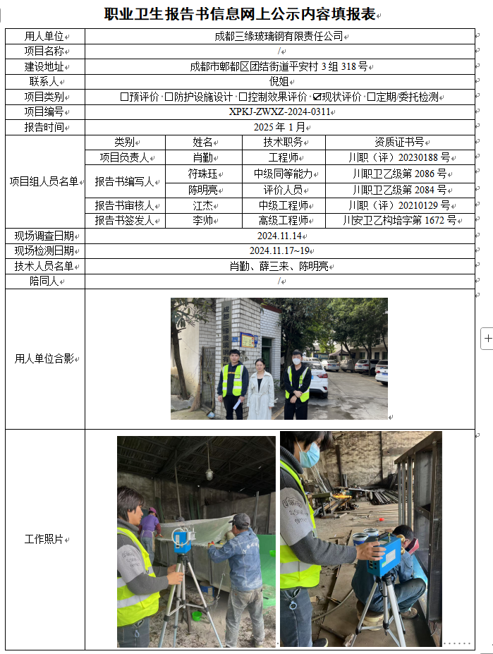 成都三缘玻璃钢有限责任公司职业病危害因素现状评价