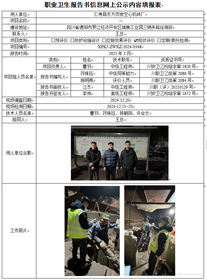 仁寿县东方页岩空心机砖厂职业病危害因素现状评价